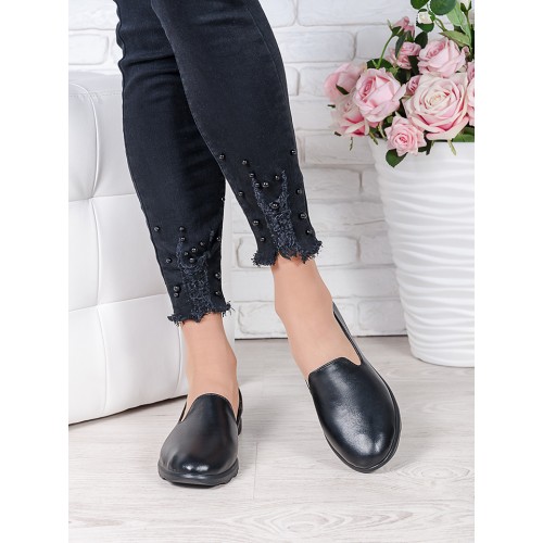 Туфли мокасины черная кожа 7044-28